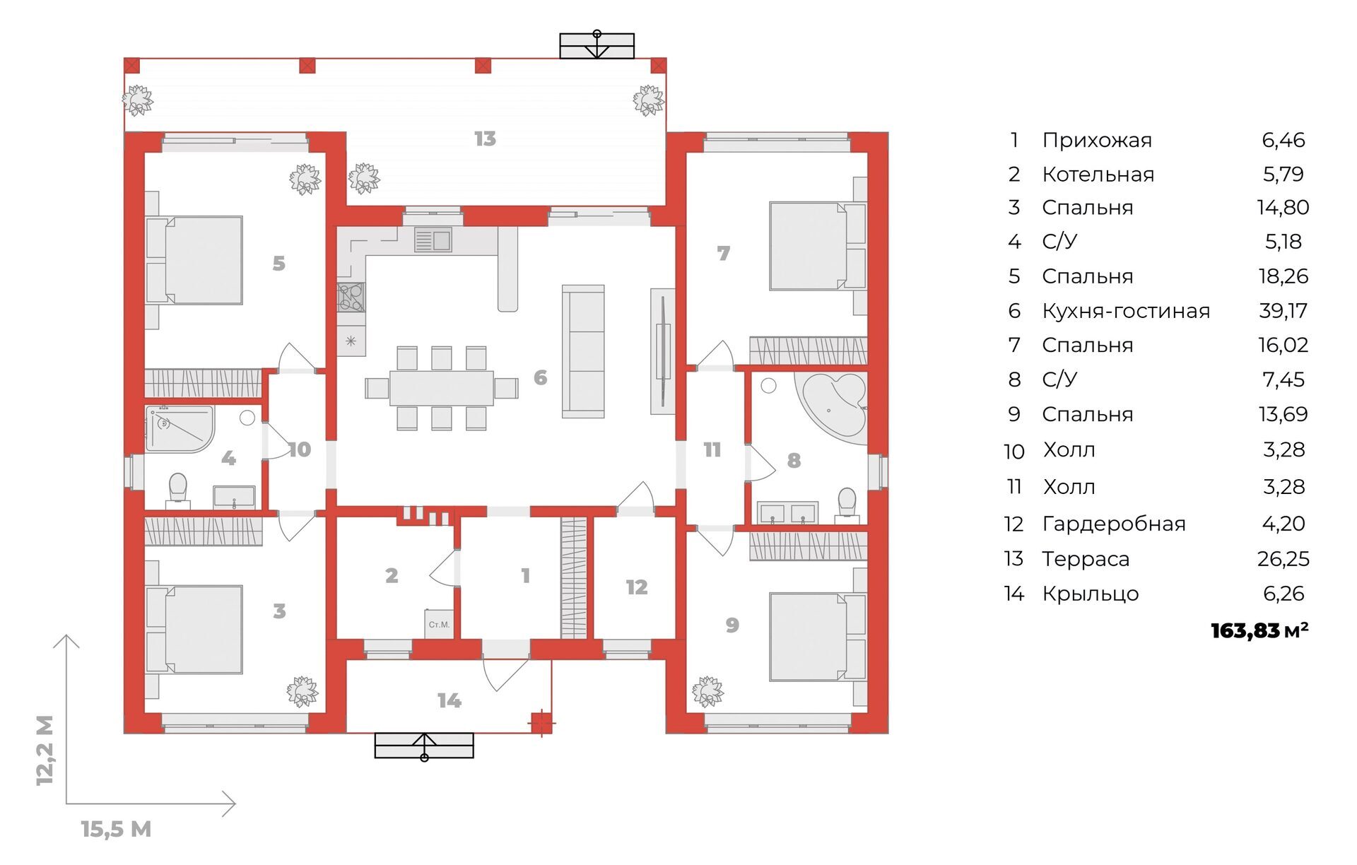 * Площадь жилого дома определяется в соответствии с приказом Росреестра от 23 октября 2020 г. № П/0393. Сумма площадей всех комнат, включая площади помещений вспомогательного использования, балконов, лоджий, террас и веранд. Площадь крыльца и тамбура в общую площадь не включаются.