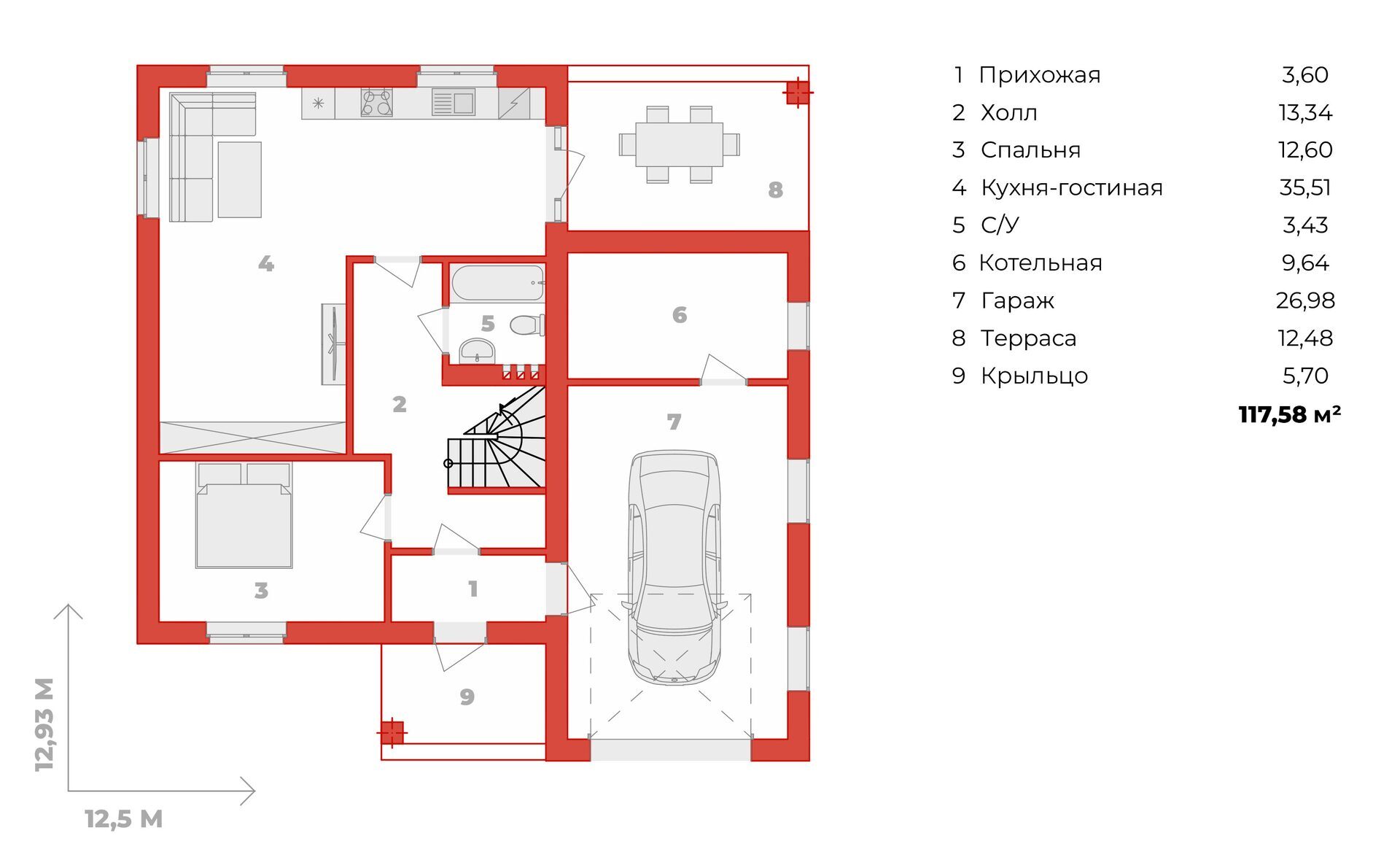 * Площадь жилого дома определяется в соответствии с приказом Росреестра от 23 октября 2020 г. № П/0393. Сумма площадей всех комнат, включая площади помещений вспомогательного использования, балконов, лоджий, террас и веранд. Площадь крыльца и тамбура в общую площадь не включаются.