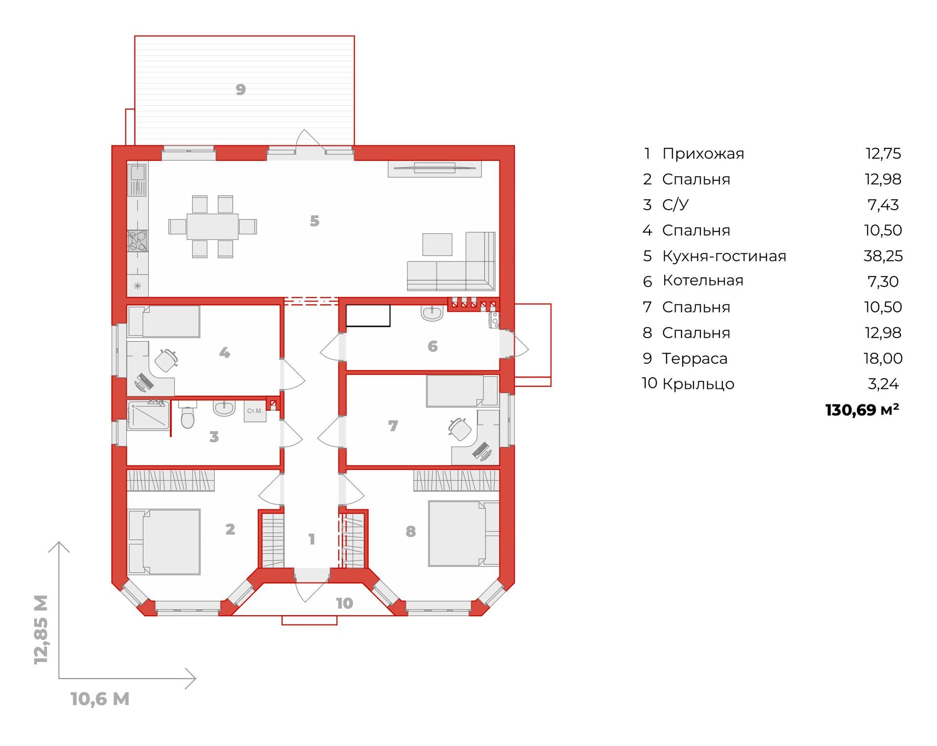 * Площадь жилого дома определяется в соответствии с приказом Росреестра от 23 октября 2020 г. № П/0393. Сумма площадей всех комнат, включая площади помещений вспомогательного использования, балконов, лоджий, террас и веранд. Площадь крыльца и тамбура в общую площадь не включаются.