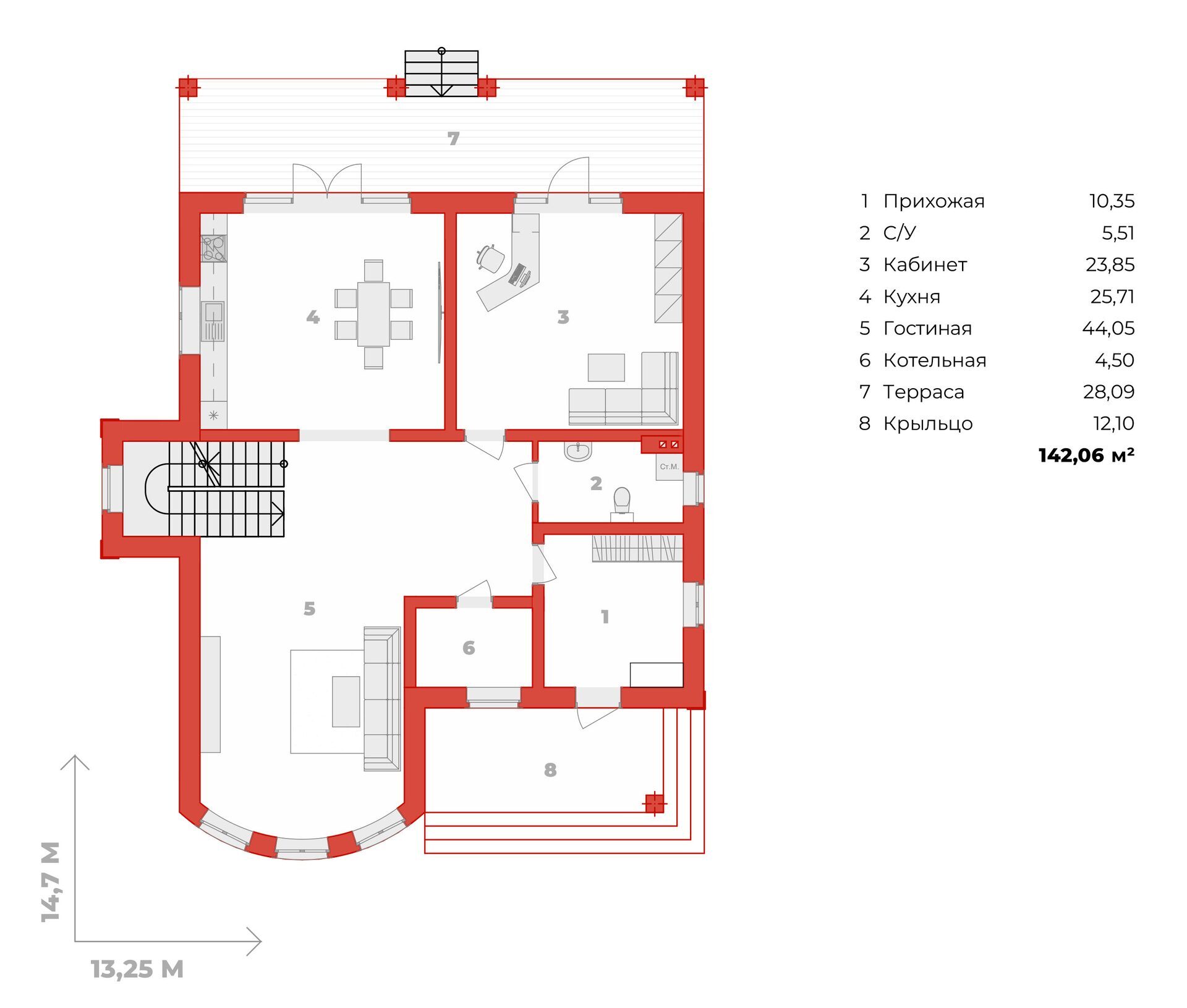 * Площадь жилого дома определяется в соответствии с приказом Росреестра от 23 октября 2020 г. № П/0393. Сумма площадей всех комнат, включая площади помещений вспомогательного использования, балконов, лоджий, террас и веранд. Площадь крыльца и тамбура в общую площадь не включаются.